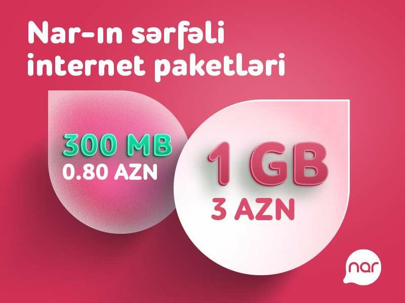 “Nar” abunəçilər eyni zamanda 7 günlük internet paketlərini də seçə bilərlər. Bu paketlərin qiyməti 1 GB üçün 3 manat, 1,5 GB üçün 3,30 manat və 3 GB üçün 5 manat kimi dəyişir. Bütün 7 günlük internet paketlərində “WhatsApp” yazışmaları pulsuzdur.