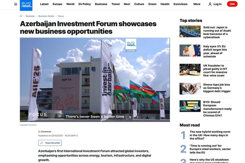 Publika.az xəbər verir ki, bu barədə "Euronews" telekanalının "Azərbaycan İnvestisiya Forumu yeni biznes imkanlarını nümayiş etdirir" adlı videoreportajında qeyd olunub.