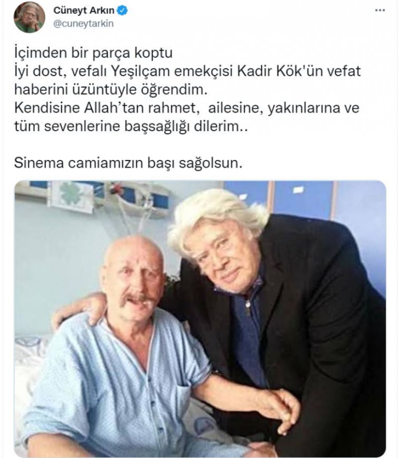 “Ürəyimdən bir parça qopdu. Yaxşı dost, vəfalı əməkçi Kadir Kökün ölüm xəbərini öyrəndim. Allahdan rəhmət, ailəsinə, yaxınlarına və sevənlərinə baş sağlığı diləyirəm” - Arkın paylaşımında qeyd edib.