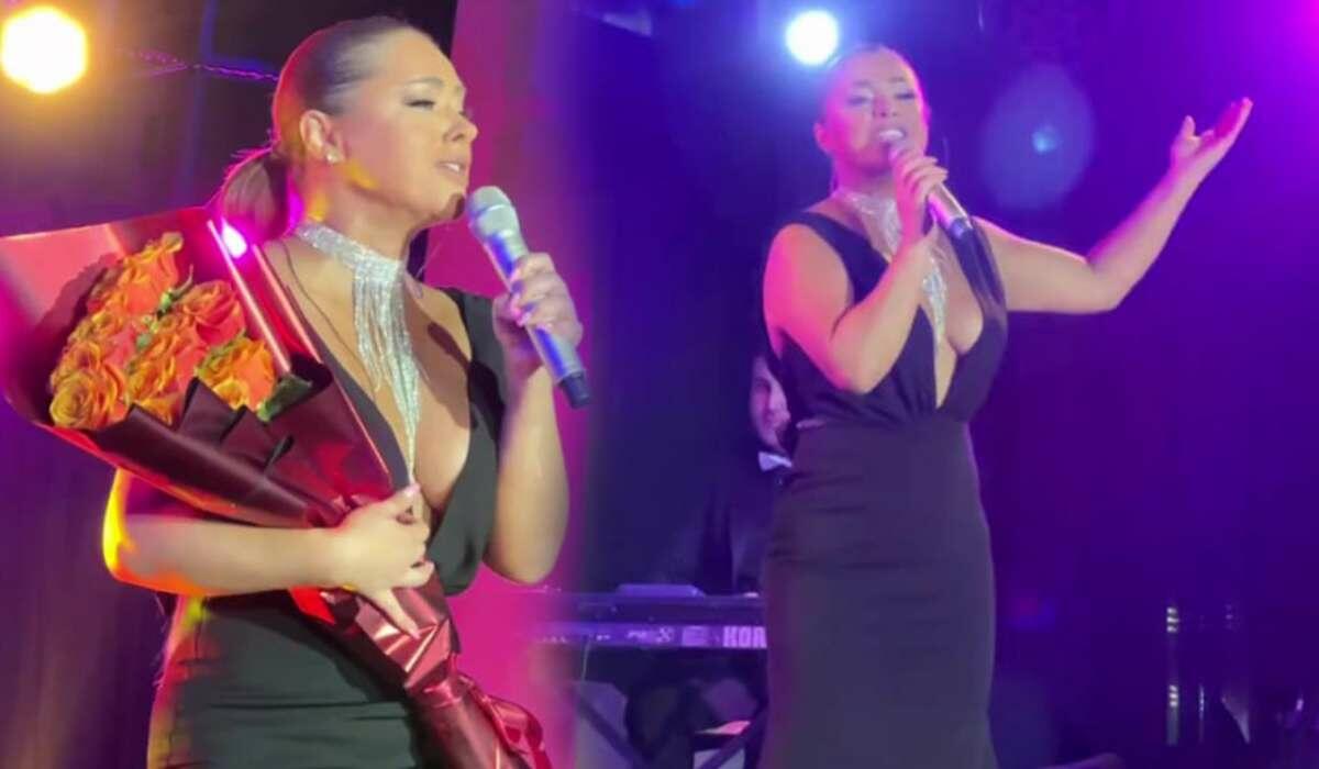 Müğənni ad gününə özəl dərin sinə dekolteli, qara, uzun libasdan istifadə edib. Lakin sözügedən geyim ona səhnədə ifa edən vaxt çətin anlar yaşadıb.
