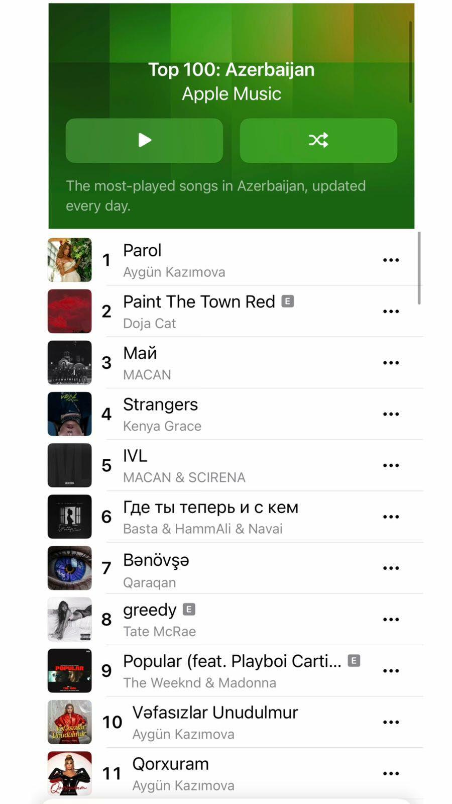 Kazımovanın mahnıları bundan əvvəl də “Apple music”də tək Azərbaycan yox, dünyanın bir çox ölkələri üzrə ən çox yüklənənlər arasında birinci sırada olub.