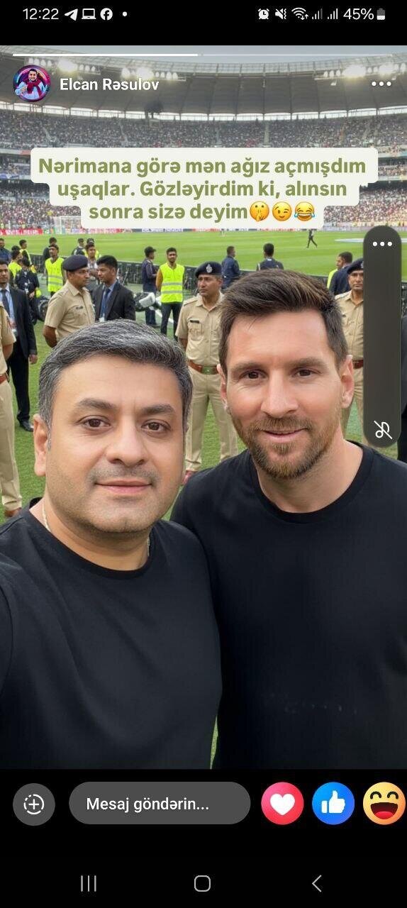 Sənətçi süni intellekt vasitəsilə ABŞ-da forma geyinən L.Messi ilə fotosunu paylaşaraq Nərimana görə "ağız açdığını" bildirib. O, paylaşımına belə bir qeyd əlavə edib: