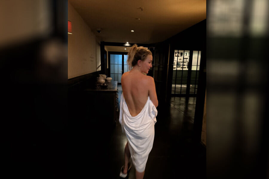 Xarici KİV yazıb ki, əslində 46 yaşlı Hadson Berlinə səfəri zamanı çəkdirdiyi fotoları paylaşıb. Fotolardan birində aktrisa bədəninin bir qismini sadəcə hamam dəsmalı ilə örtüb. Onun yarıçılpaq fotosu jurnalistlərlə yanaşı pərəstişkarlarınının da diqqətini cəlb edib.
