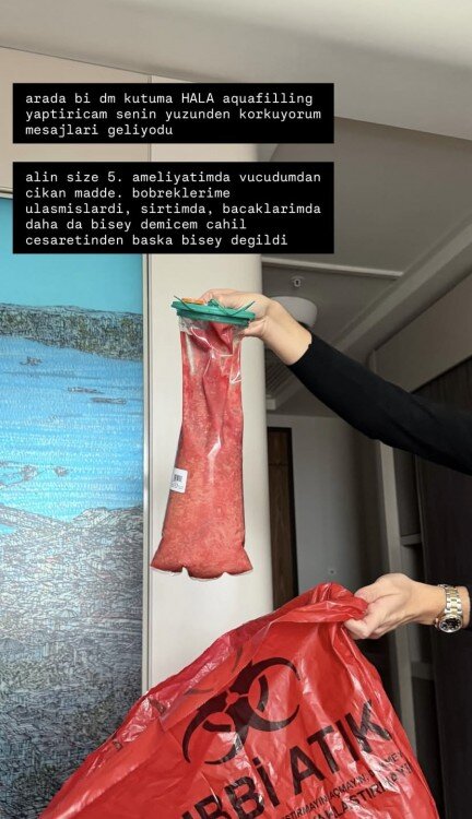 Publika.az xəbər verir ki, o, əməliyyat zamanı bədənindən çıxarılan maddələrin görüntülərini paylaşaraq vəziyyətin ciddiliyinə diqqət çəkib: