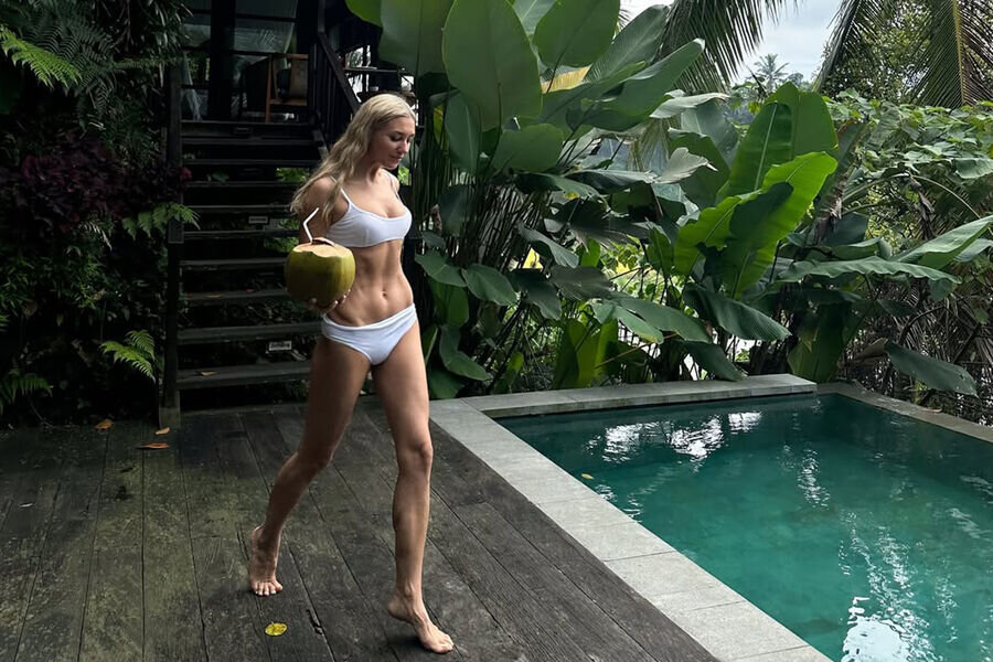 37 yaşlı Kristina Asmus fotonu Balidə tətili zamanı çəkdirib. O, kamera qarşısına ağ alt paltarda çıxıb. Asmus dalğalı sadə saçları və makiyajsız poza verib. Fotoda aktrisanın hovuzun yanında əlində kokos tutması da diqqət çəkib.