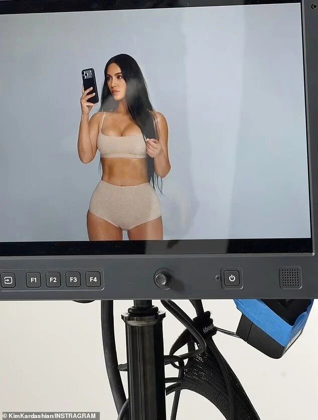 Bəzi kadrlarda onun brendi üçün çəkilmiş son fotosessiyasının pərdəarxası görüntüləri yer alır: bir fotoda o, bej rəngli büsqalter və şort geyinərək qarın əzələlərini nümayiş etdirir; digərində isə çəkiliş zamanı eyni geyimdə monitorda görüntülənib.