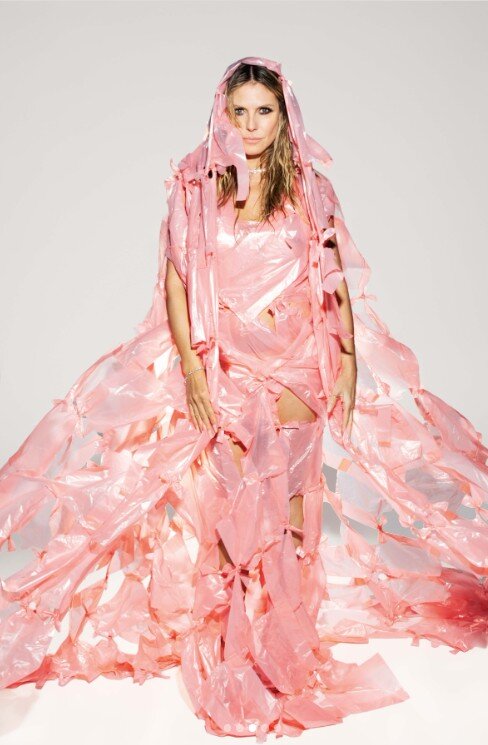 52 yaşlı supermodel zibil torbasından hazırlanmış geyimlərlə pozalar verdi