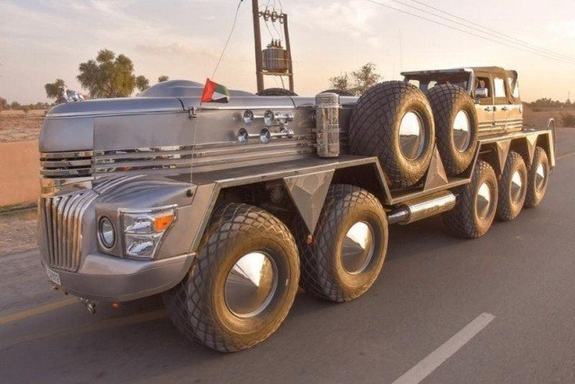 Son olaraq transformer filmlərinin obrazlarını xatırladan avtomobil ərsəyə gətirən şeyx bu dizaynda “Jeep Wrangler”, “Dodge Dart” və “Oskosh M1075” hərbi yük maşınından istifadə edib.