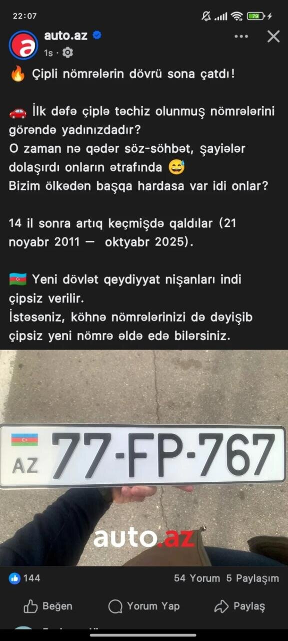 Publika.az xəbər verir ki, xəbər verir, yeni dövlət qeydiyyat nişanları 2025-ci ildən artıq cipsiz verilir.