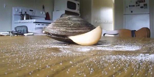 2. Çanağında təbii mirvarilər yaranan dənizin dərinliklərində yaşayan su ilbizi maraqlı quruluşa malikdir. Dünyada ən bahalı zinət əşyaları mirvarilər hesab olunur. Təbii mirvarilər yeganə zinət əşyalarıdır ki, insan əli dəymədən təbii şəkildə ilbizlərin içərisində emal olunur. Şəkildə gördüyünüz heyvan sərt qabıqlarının arasından dilini uzadaraq stola tökülmüş duzu yeyib. Həmin maraqlı anlar lentə alınıb. Əslində heyvan dilini ayaq funksiyasını yerinə yetirmək üçün istifadə edir.