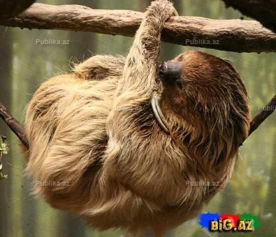 5.Tənbəl heyvan olaraq bilinən maraqlı canlılar Cənubi Amerikada yaşayırlar. Yer üzündəki bütün məməli heyvanlar arasında ən yavaş hərəkət edən canlılardır. Saniyə ərzində ən çox yarım metr məsafə qəth edə bilirlər. Bu heyvanlar günün 15-18 saatını yataraq keçirtməklə dünyanın ən tənbəl heyvanı seçiliblər. Onların bəziləri tənbəllikdən nə su içir, nə də yemək yeyir. Məlumatlara görə onların arasında bu tənbəllik səbəbindən acından ölənlər olub. Onlar təbiətdə ən zərərsiz varlıqlar hesab olunur. İti və uzun dırnaqları sayəsində ağac budaqlarında yarasalar kimi başı aşağı şəkildə yaşayırlar. Daim başı aşağı qalan heyvanların daxili orqanları kimi tükləridə tərs istiqamətə doğru çıxır.