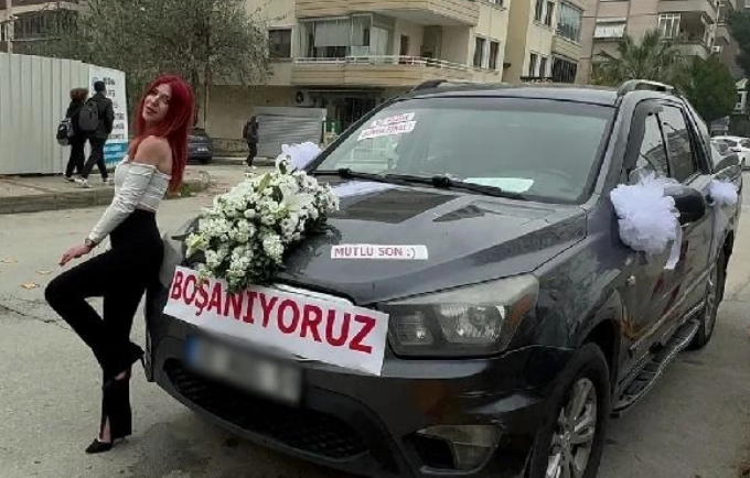 Publika.az xəbər verir ki, Bursada 29 yaşlı Gülşah A.boşanma məhkəməsinə gəlin maşını kimi bəzədilmiş maşını ilə gəlib.