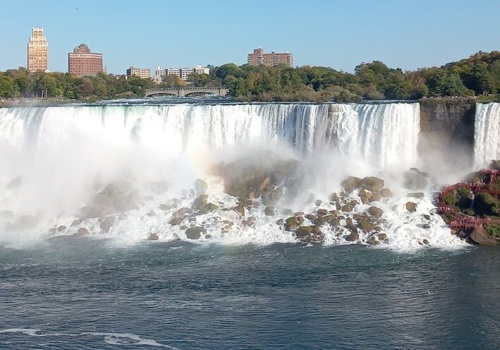 Şəlalənin Kanadadan görünən mənzərəsi daha möhtəşəmdir. Amerikalılar ərazidəki qülləyə çıxmaqla şəlaləyə yandan tamaşa edə bilirlər. Mənzərəni daha əhatəli seyr etmək üçünsə çayda qayıq və ya gəmi turlarına çıxırlar.