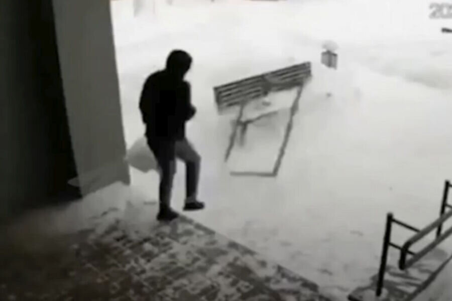 Belə ki, yayılan görüntülərdə binadan çıxan bir kişi kodla olan qapının örtülməməsi üçün onu qadına görə saxlayır və arada qazanılan zaman səbəbindən və bir qədər gec addımladığı üçün yuxarıdan düşən pəncərə çərçivəsi onun başına düşmür.