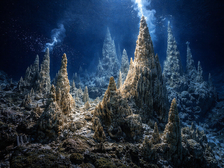 Publika.az xəbər verir ki, hidrotermal sahə dəniz dağının zirvəsinin yaxınlığında, 700 metrdən çox dərinlikdə yerləşir. Okean dibindən ucalan iti əhəngdaşı qüllələri və sütunlar sistemindən ibarətdir. Fərdi formasiyaların hündürlüyü bir neçə metrdən təxminən 60 metrə qədər dəyişir. Ən böyük monolit Poseydon adlanır.