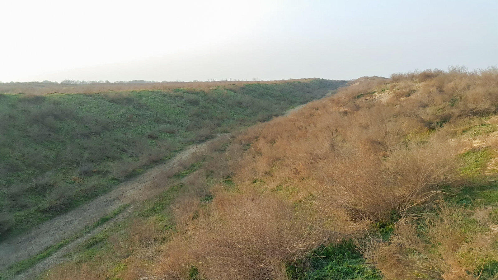 Yüksəklikdə qarşımıza üstünü yabanı bitkilər örtmüş geniş sahə