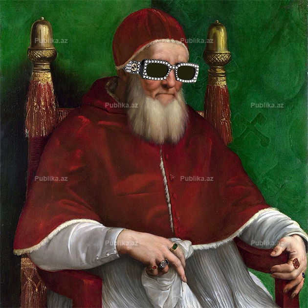 5. Hersoq Qvidobaldo de Montefeltro nüfuzlu rəssam Rafaelin fırçasından. Pələnglə qızılı zənciri isə ən dəbdə olan Kenzo firmasındandır.