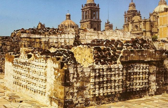 Konkistador Andres de Tapia adlı tarixçi Meksika ərazisindəki bir mağarada gördüklərindən dəhşətə gəldiyini bildirir. Burada yaşayan asteklərin qurbanvermə ayinləri insanın damarda qanını dondurur. 2017-ci ildə arxeoloqlar bu əraziləri bir daha araşdırmağa başladılar və 676 ədəd kəllə sümüyündən tikilmiş 6 metr hündürlüyündə məbəd tapdılar. Sümüklər araşdırılan zaman isə alimlər ikiqat təəccübləndilər. Bu məbədin tikilməsində yalnız kişilərin deyil həmçinin qadınlar və azyaşlı uşaqların kəllə sümüyündən də istifadə edilmişdi.