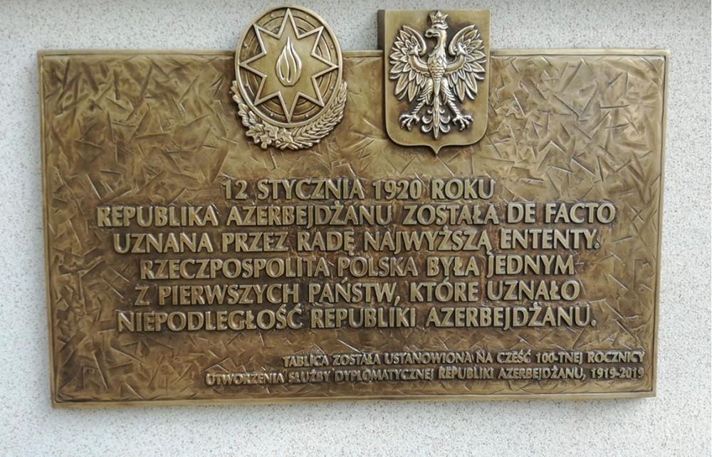 Səfir deyib ki, 2018-2019-cu illər bir-birinin ardınca bizim üçün yubiley illərdir. Keçən il Azərbaycan Respublikasının 100 illiyi, bu il isə Azərbaycan Respublikasının diplomatik xidmətinin 100 illiyi qeyd olunur. Bu hadisələrlə əlaqədar biz Polşanın Yeni Aktlar Arxivində sənədlərin axtarışını apardıq, çox maraqlı nəticələr əldə etdik və çalışdıq ki, sənədlərdə əks olunan hadisələri əbədiləşdirək. Lövhədə yazılıb ki, Paris Sülh Konfransına sədrlik edən Antanta İttifaqının üzvləri 1920-ci il yanvarın 12-də Azərbaycanın müstəqilliyini de-fakto tanıyırlar. Polşa isə Azərbaycanın müstəqilliyini fevralın 13-də tanıyıb. Bununla bağlı Polşanın o zamankı xarici işlər naziri Stanislav Patek Azərbaycan hökumətinə Konstantinopol (İstanbul) vasitəsilə teleqram göndərir. Həmin vaxt Azərbaycan Xalq Cümhuriyyətinin xarici işlər naziri Fətəli xan Xoyski idi və həmin teleqram (depeşe) ona təqdim olunmuşdu. Sənəddə, həmçinin vurğulanır ki, Ermənistan bu günədək Polşa tərəfindən tanınmayıb. Göründüyü kimi, Polşa Azərbaycanda 1918-ci ildə yaranmış vəziyyətdən tam xəbərdar idi. Hətta onlar Bakıda nəşr olunan yerli mətbuatla da tanış idilər.