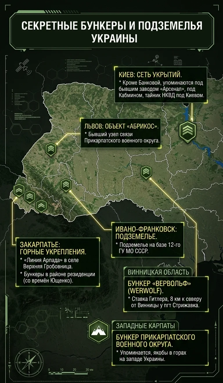 Qalan üç bunker ölkənin qərb bölgələrində - İvano-Frankivsk vilayətində, Vinnitsa və Zakarpatyedə yerləşir. Strateji sığınacaqların xəritəsinin ictimaiyyətə açıqlanması əvvəllər təsnif edilmiş bu yerlərin təhlükəsizliyi ilə bağlı suallar doğurur.