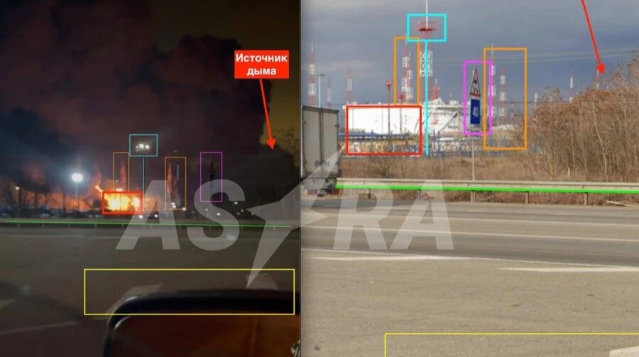 Şahidlərin paylaşdığı görüntülərə görə, yanğın yerli neft bazasındakı çənlərdə baş verib. Həmin obyekt “Tixoretsk-Neft” şirkətinə məxsus neft ötürmə məntəqəsinin bir hissəsidir.