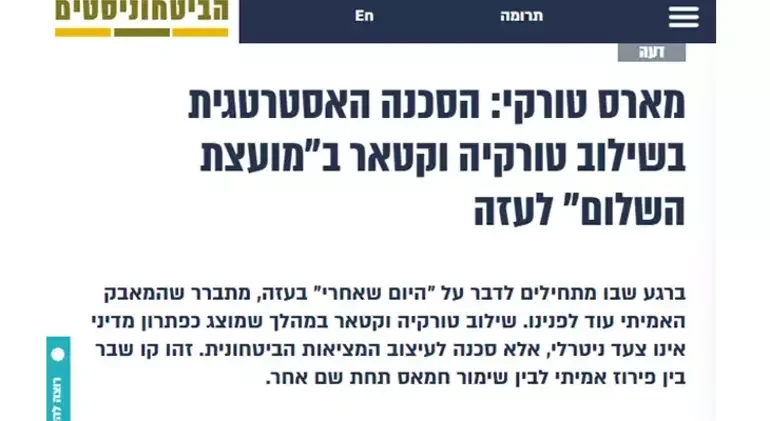Təqaüdçü leytenant-polkovnik Yaron Buskilanın müdafiə xəbərləri veb saytı olan IDSF-də dərc etdiyi təhlildə Türkiyənin Qəzza Sülh Komitəsindəki iştirakı ilə bağlı diqqətəlayiq ifadələr yer alıb.