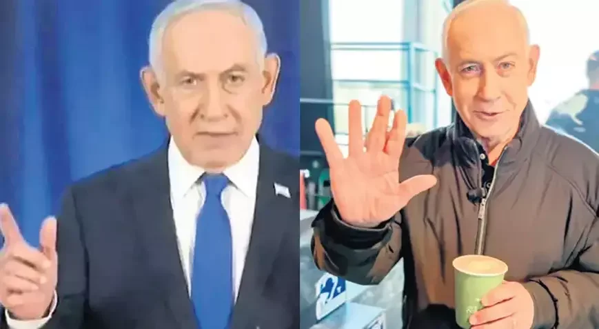 Bu arada Netanyahu sosial mediada qəhvəxanadan qəhvə aldığını göstərən bir video paylaşaraq, "altı barmaqlı video" iddialarına əlindəki barmaqları göstərərək cavab verib. İsrail xalqına müraciət edən Netanyahu, qorunan ərazilərə yaxın qalmalarının lazım olduğunu söyləyib. Bununla belə, paylaşılan videonun süni intellektdən istifadə edilərək yaradıldığı iddiaları da ortaya çıxdı.