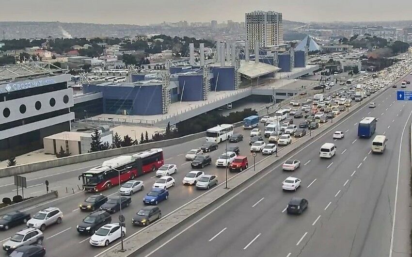 Bakının bir sıra yollarında nəqliyyatın sıxlığı yaranıb.