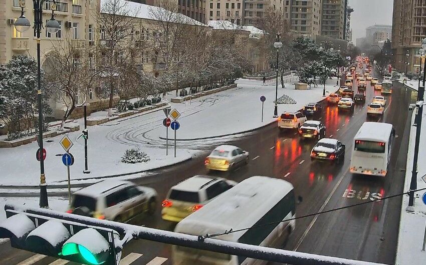 Yenə qar yağdı: Hazırda Bakı yolları... - Fotolar/Yeniləndi