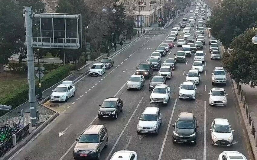 Bakının bir sıra yollarında nəqliyyatın sıxlığı yaranıb.