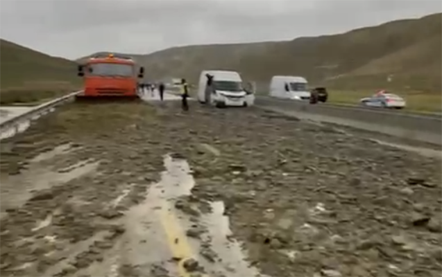 Güclü yağış səbəbindən gələn sel Bakı-Şamaxı-Yevlax yolunun 78-ci kilometrliyində avtomobillərin hərəkətində müəyyən maneə yaradıb.