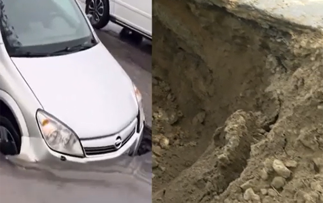Publika.az xəbər verir ki, aprelin 16-sı baş vermiş çökmə zamanı minik avtomobili həmin çuxura düşərək ciddi zərər görmüşdü.