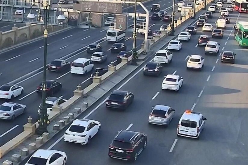 Bakının bir sıra yollarında nəqliyyatın sıxlığı yaranıb.
