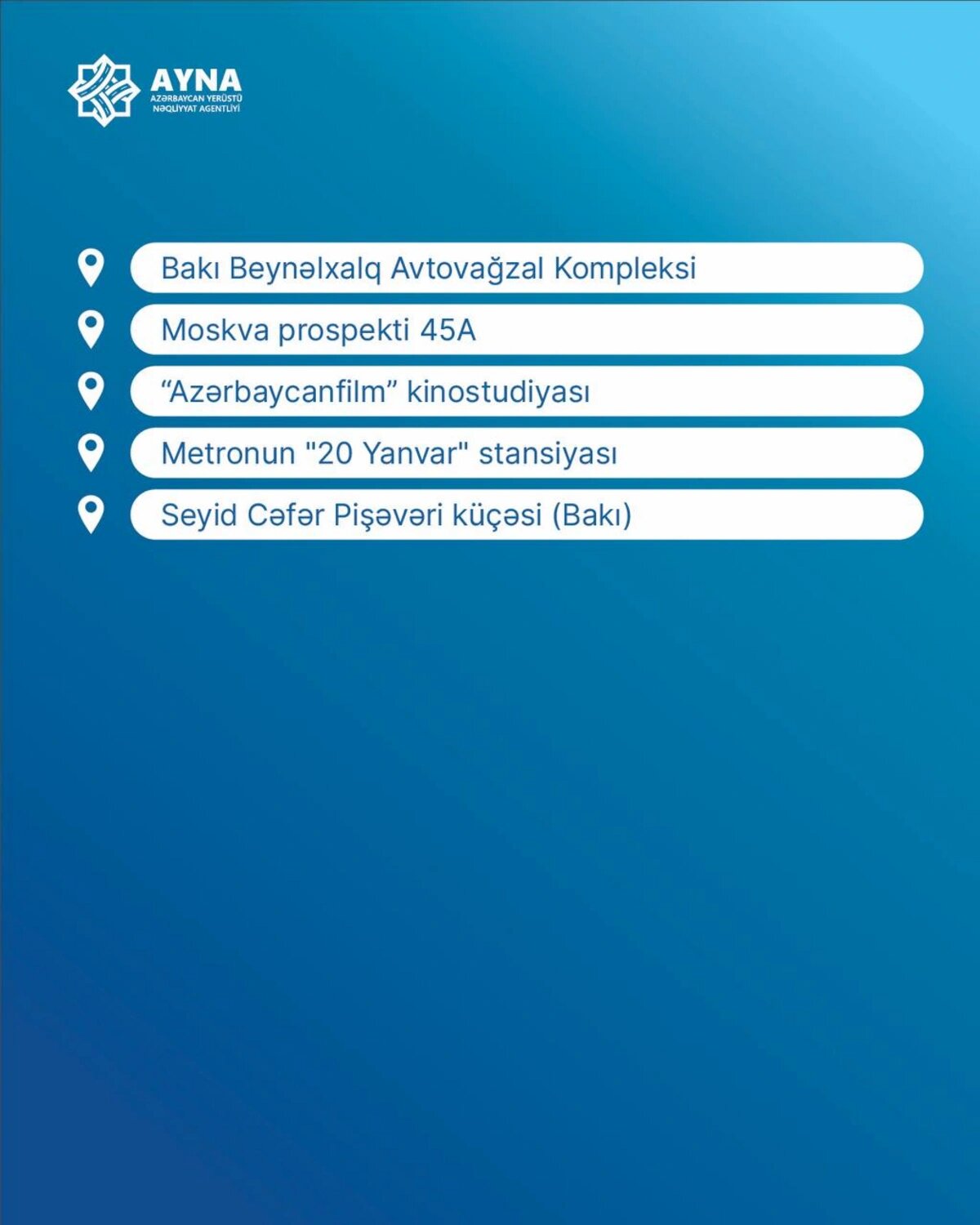 Qeyd olunan istiqamətdə avtobuslar saat 05:45-dən 23:00-dək fəaliyyət göstərəcək.