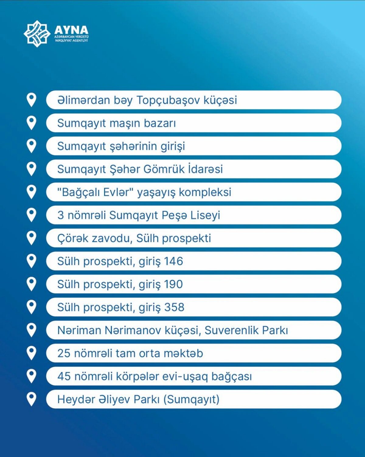 Rəqəmsal İnkişaf və Nəqliyyat Nazirliyi yanında Azərbaycan Yerüstü Nəqliyyat Agentliyi (AYNA) Sumqayıt şəhərindən paytaxta təşkil edilən 500 nömrəli müntəzəm avtobus marşrutunun dayanacaq məntəqələrini açıqlayıb.