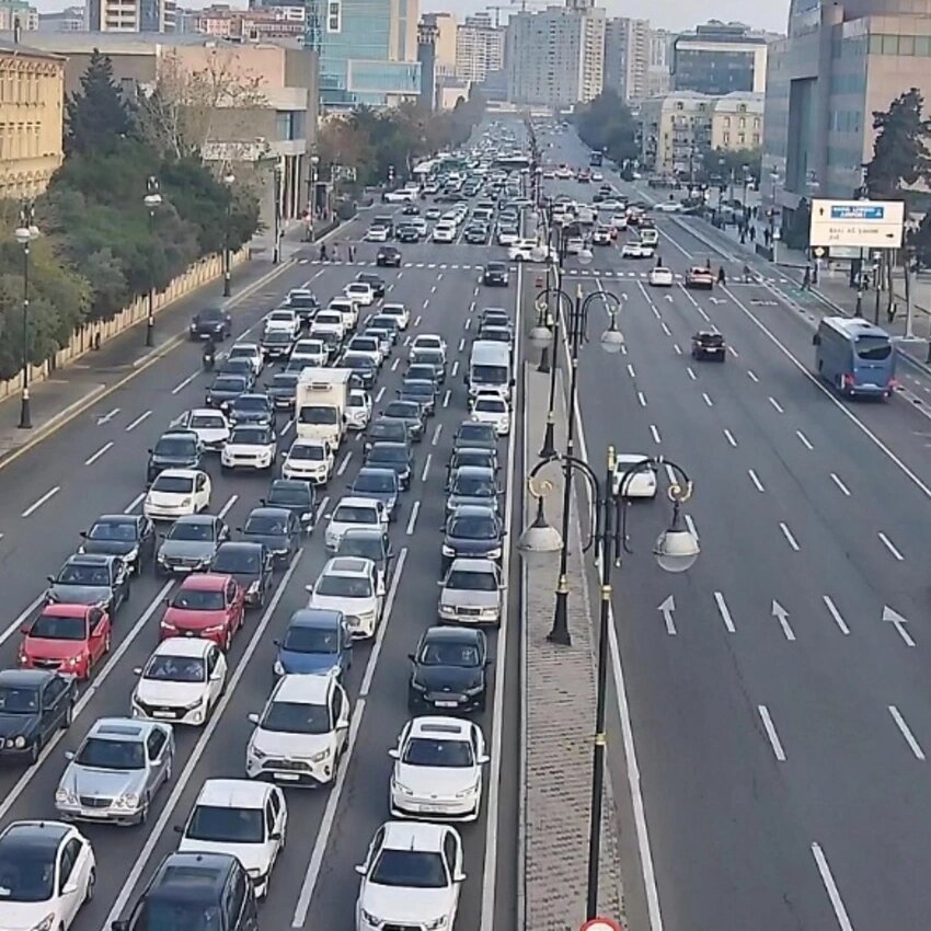 11. Bakıxanov küçəsi, İnşaatçılar prospekti ilə kəsişmədən "Dədə Qorqud" parkı istiqamətində sıxlıq müşahidə olunur.