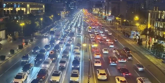 Bakının bir sıra yollarında nəqliyyatın sıxlığı müşahidə olunur.