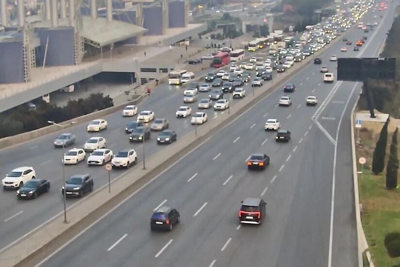 Bakının bir sıra yollarında nəqliyyatın sıxlığı yaranıb.