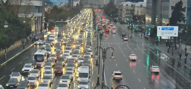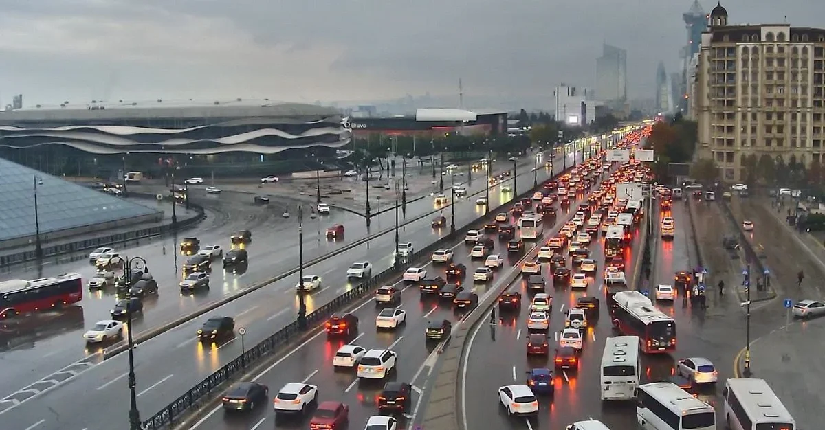 Bakının bir sıra yollarında nəqliyyatın sıxlığı müşahidə olunur.