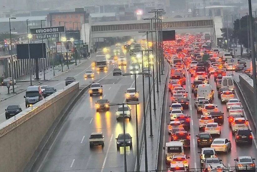 Bakının bir sıra yollarında nəqliyyatın sıxlığı yaranıb.