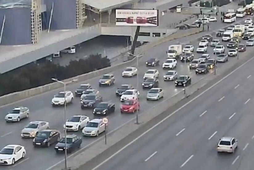 Bakının bir sıra yollarında nəqliyyatın sıxlığı müşahidə olunur.