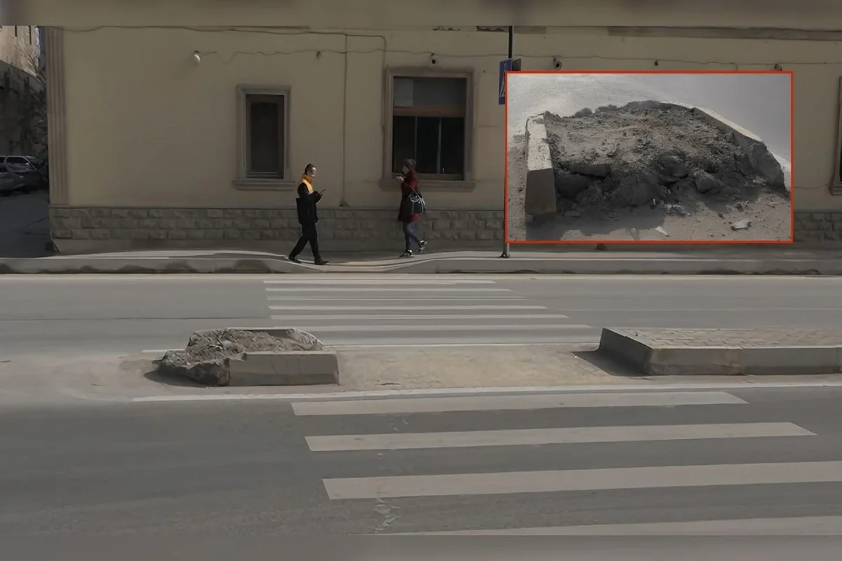 Sürücülər üçün təhlükə törədən səki: "Nə işıq, nə yol nişanı var" - VİDEO