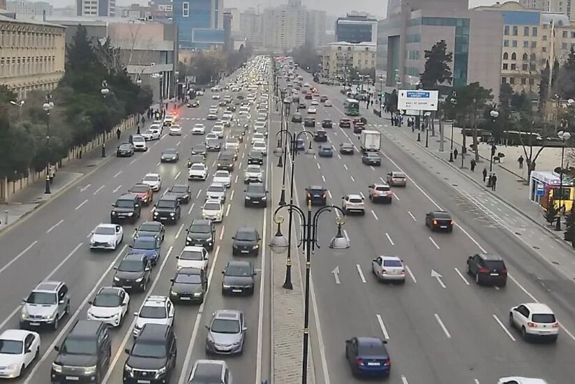 Bakının bir sıra yollarında nəqliyyatın sıxlığı müşahidə olunur.