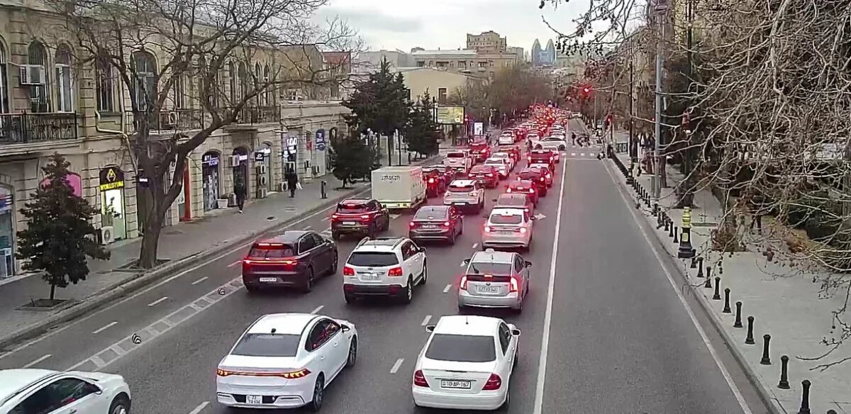 12. Alı Mustafayev küçəsi, Ziya Bünyadov prospekti istiqamətində sıxlıq müşahidə olunur.