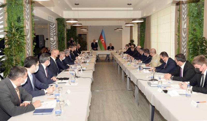 Sonra Dövlət Şəhərsalma və Arxitektura Komitəsinin sədri Anar Quliyev işğaldan azad olunmuş ərazilərin Ümumi Planı ilə əlaqədar görülmüş işlər barədə təqdimat edib.