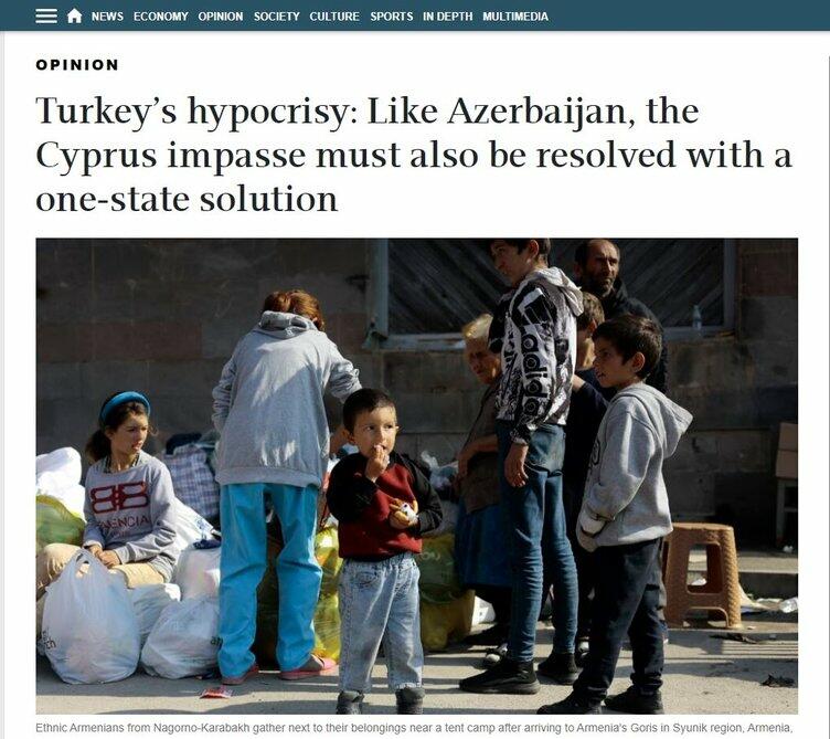 Publika.az xəbər verir ki, yunan mətbuatı Azərbaycanın Qarabağdakı qələbəsini Kipr məsələsi ilə müqayisə edərək Türkiyəyə qarşı qalmaqallı ittihamlar səsləndirib. Azərbaycanın Qarabağdakı tarixi qələbəsini gündəmə gətirən yunan qəzeti "Kathimerini" bəyan edib ki, “Qarabağ Azərbaycanın suveren ərazisi kimi beynəlxalq səviyyədə tanınır”.
