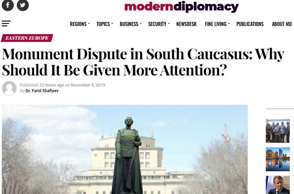 Məqalədə qeyd edilir ki, baxmayaraq bu mübahisələr Cənubi Qafqaz üçün yeni deyil, lakin MDB-nin Aşqabaddakı Sammitində Azərbaycan Prezidenti İlham Əliyevin çıxışından sonra yenidən aktuallıq qazanıb və geniş müzakirələrə səbəb olub. Həmin Sammitdə Prezident İlham Əliyev Ermənistanda nasistlərlə birlikdə minlərlə insanın qətlində iştirak etmiş Qaregin Njdeyə paytaxt Yerevanda abidə qoyulmasını sərt tənqid edib və bunu müharibə qurbanlarının xatirəsinə hörmətsizlik kimi qiymətləndirib.