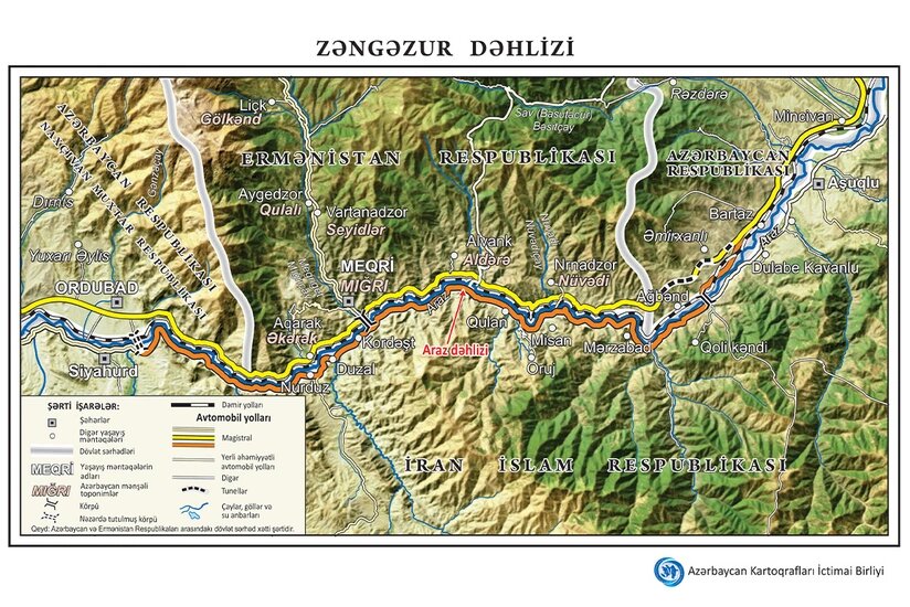 "Azərbaycan Kartoqrafları" İctimai Birliyi Zəngəzur dəhlizinin xəritəsini hazırlayıb. Xəritənin altlığı yüksək keyfiyyətli kosmik şəkillər əsasında tərtib edilib.