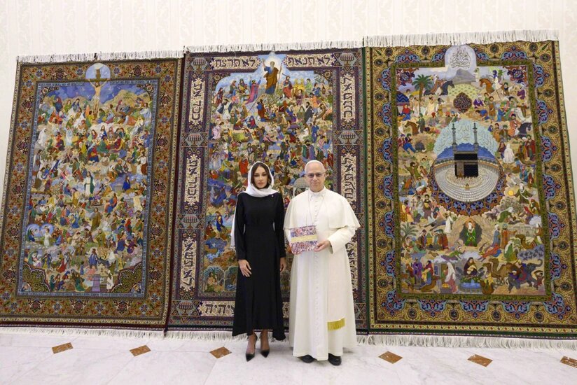 Publika.az xəbər verir ki, Birinci vitse-prezident Mehriban Əliyevanın Roma Papası XIV Leo ilə görüşündə təqdimatı olan bu sənət əsəri iudaizm, xristianlıq və İslam dinlərinə həsr edilib, dərin fəlsəfi düşüncənin, milli sənətkarlıq ruhunun təcəssümüdür.