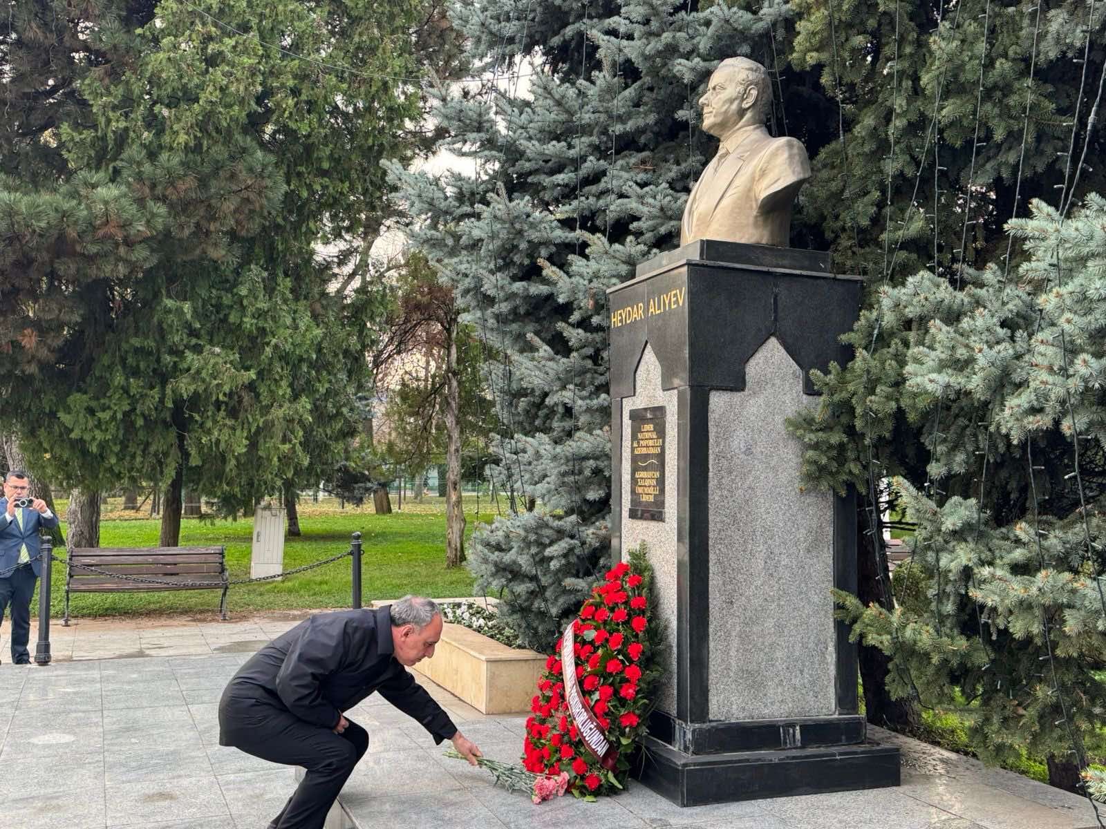 Ziyarət zamanı Ulu Öndərin əziz xatirəsi dərin ehtiramla yad olunub, büstün önünə əklil və güllər düzülüb.